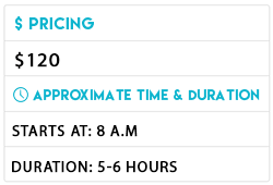 Las tarifas del tour de un día son de $ 115 por persona para adultos y $ 85 por niño de hasta 11 años.